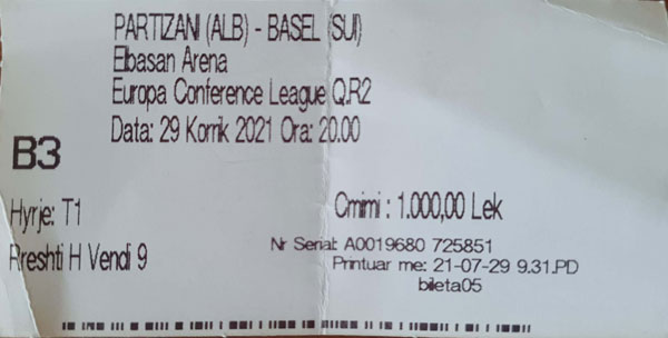 Europaleague Quali Partizani Tirana - FC Basel